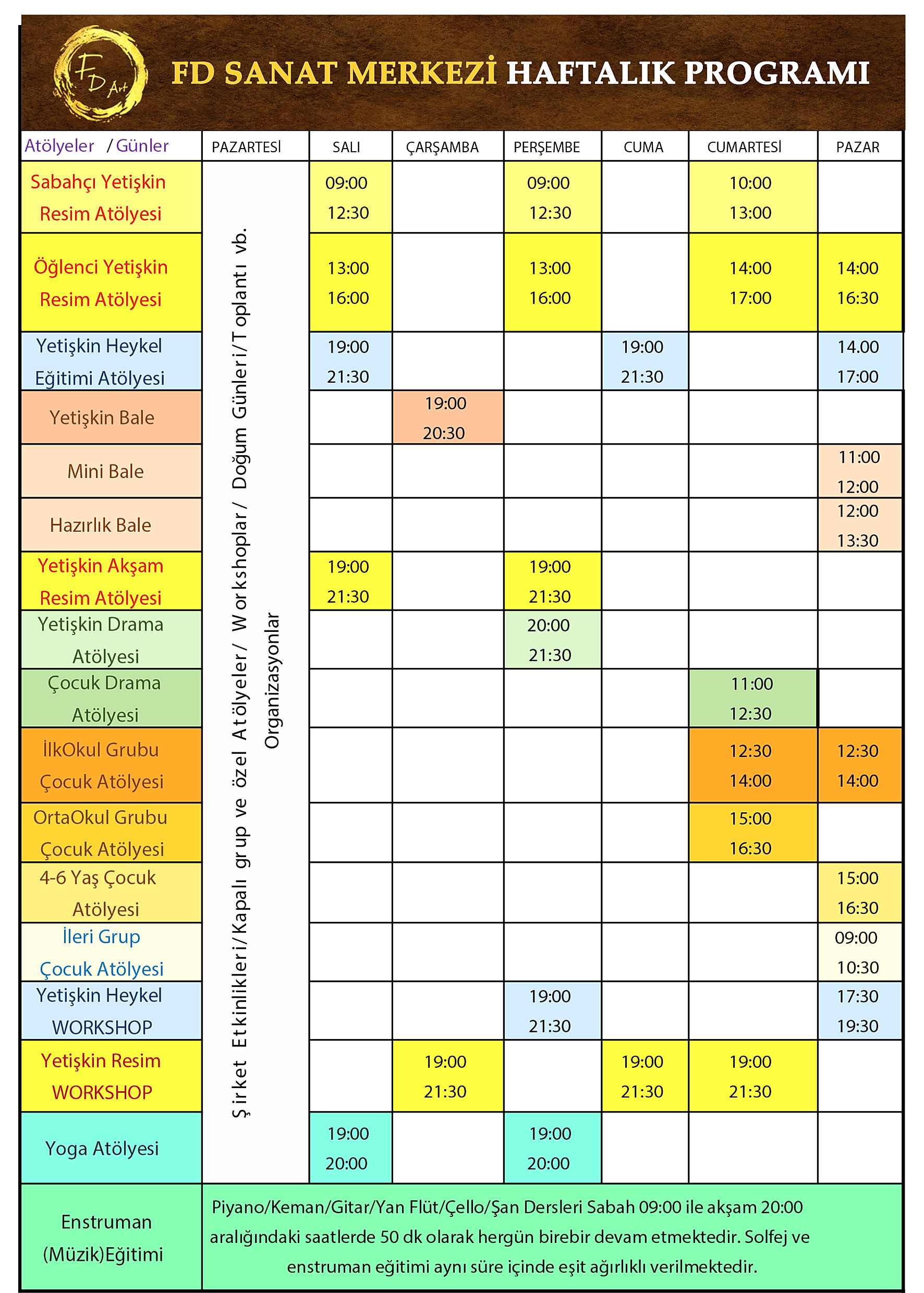 FD ART AKADEMİ HAFTALIK DERS PROGRAMI